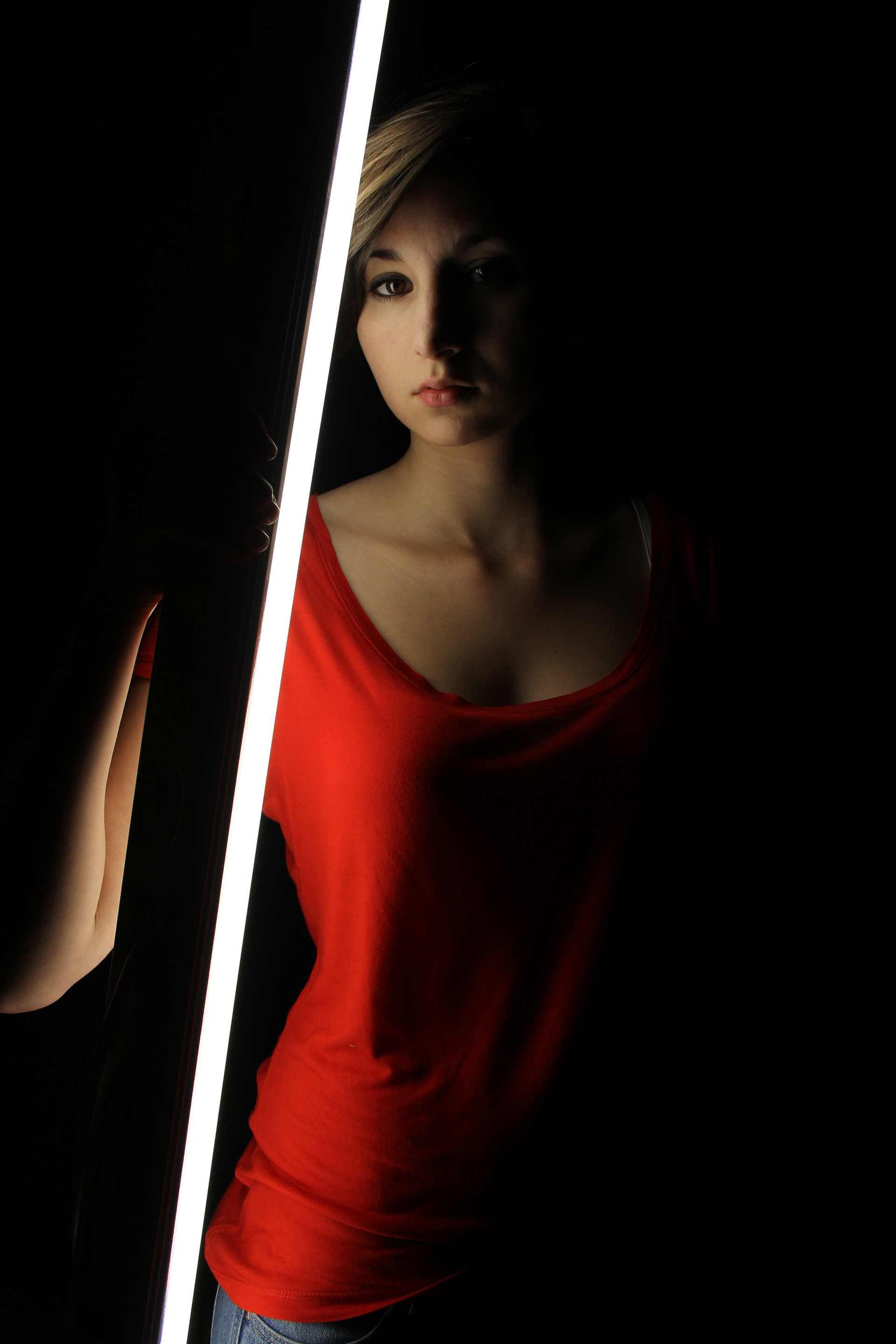 Das Selbstportrait rückte für mich während der Pubertät in den Fokus meiner Interessen. In dieser Zeit schlüpfte ich oft in andere Rollen. Selbstportraits, auf denen ich mir fremd vorkam, fand ich spannend und sie gaben mir den Antrieb noch mehr auszuprobieren. Einmal war ich Lara, die mit ihrem Spiegelbild spielt und einmal war ich einfach Lara, die mit einer Lichtröhre vor einem schwarzen Vorhang in ihrem Zimmer stand. Jedes Wochenende hatte ich neue Ideen, mich anders zu inszenieren und der ganze Vorgang wurde zu einem wichtigen Ventil für meinen Ausdruck.